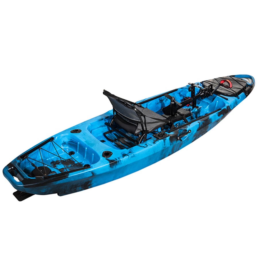 Nag-aalok ang Fishing Pedal Kayak na ito ng napaka-abot-kayang pedal drive fishing kayak sa isang compact at maliksi na pakete. Sa 3m na may 34.6in beam, ang pedal drive na kayak na ito ay nag-aalok ng maraming katatagan at ito ay mahusay para sa mga tahimik na araw sa paggalugad at pangingisda sa mga panloob na tubig at mga nakasilong estero o look. Perpekto para sa isang spot ng light lure fishing!